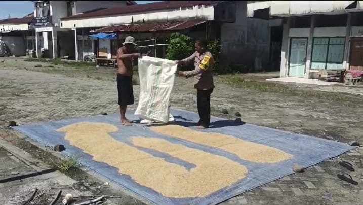 Dalam kesempatan tersebut, Aipda Amrullah juga turut membantu warga yang sedang menjemur padi serta menyampaikan pesan-pesan kamtibmas.